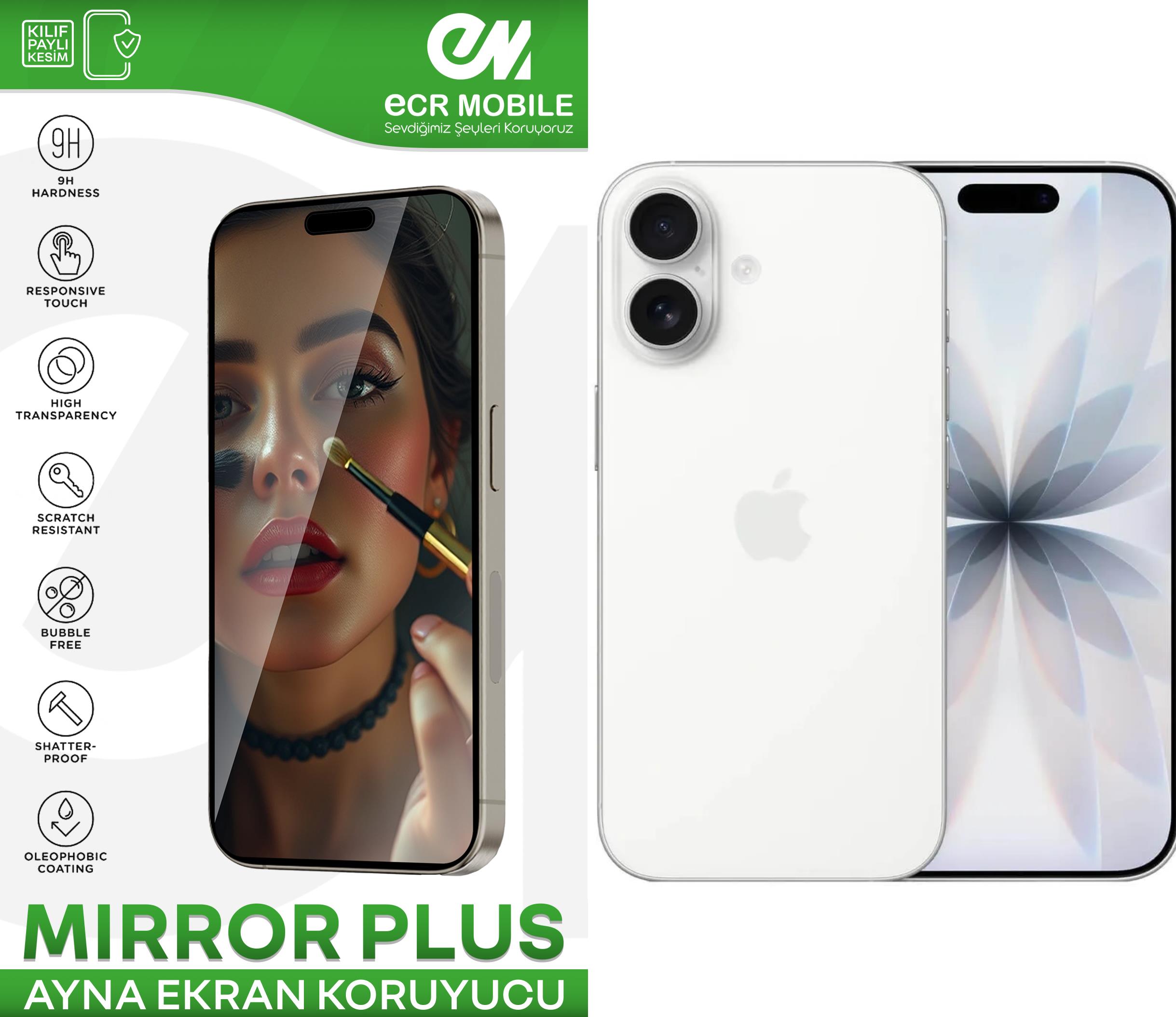 ÜRÜN TEMPERED CAM DEĞİLDİR.ESNEK NANODUR SİZ DE GÜZELLİĞİNİZİ BİR DE TELEFONUNUZUN GÖZÜNDEN GÖRMEK İSTEMEZ MİSİNİZ? TÜRKİYE’DE İLK VE TEK AYNA EKRAN KORUYUCULAR ECR MOBILE FARKIYLA!!!Iphone 17MODELİ İLE TAM UYUMLUDUR. Ayna Ekran Koruyucularda yapısı gereği Parmak izi okuyucu sağlıklı çalışmayabilir. Bu bilgiler ışığında sipariş geçmeniz önerilir.ECRMOBILE 9H KIRILMAZ AYNA(MİRROR)EKRAN KORUYUCU ÖZELLİKLERİ-ECR MOBILE KIRILMAZ TPU (TERMOPLASTİK POLİÜRETAN ÜRÜN)MALZEMEDEN OLUP DÜNYANIN EN İNCE VE SAĞLAM MALZEMESİDİR.-ÜRÜNÜMÜZ NANO OLUP KESİNLİKLE CAM (TEMPERED) VEYA PİLEKSİ DEĞİLDİR.-ÜRÜN GÖRSELLERİ FARKLI MODELLER İÇİN ÇEKİLMİŞ OLABİLİR.-SATIN ALDIĞINIZ ÜRÜN SEÇİM YAPTIĞINIZ MODELE UYUMLU OLARAK GÖNDERİLECEKTİR.-ÜRÜNLER LAZER MAKİNELERDE SIFIR HATA İLE KESİLMEKTEDİR.-KALİTELİ DAYANIKLI ULTRA ESNEK YAPIDADIR.-KOLAY YAPIŞAN GÖRÜNTÜ KALİTESİNİ BOZMAYAN DOKUNMATİK HASSASİYETİNİ ENGELLEMEYEN YAPIYA SAHİPTİR-ULTRA İNCE ESNEK ÖZELLİKTEDİR.-ÜRÜNLER CİHAZINIZIN MODEL VE EKRAN YAPISINA GÖRE KASA DOSTU MODEL OLARAK MAKİNEDE OTAMATİK KESİLMEKTEDİR.DOLAYISI İLE KENARLARDA AZ DA OLSA BOŞLUK OLABİLMEKTEDİR. -KASA DOSTU KESİMLERDE KENARLARDA KILIF İLE KULLANIMDA BİR SORUN YAŞANMAMASI AÇISINDAN BOŞLUK BULUNMAKTADIR -UYGULAMA YAPMADAN ÖNCE ÜRÜNÜN MODEL UYUMLULUĞUNU KONTROL EDİNİZ-UYGULAMADAN ÖNCE EKRAN TOZ KİR VE YAĞDAN ARINDIRILMIŞ OLMALIDIR.-BUNUN İÇİN KUTU İÇERİĞİNDE BULUNAN GSM CİHAZLAR İÇİN ÖZEL OLARAK ÜRETİLMİŞ KOZMİK AKSAMA ZARAR VERMEYEN İÇERİSİNDE İPA (İZO PROPİL ALKOL ) İÇEREN TEMİZLEME MENDİLİNİ VE KURULAMA BEZİNİ KULLANINIZ -ÜRÜN TEK KULLANIMLIK OLDUĞUNDAN KORUYUCU YÜZEYLERİ SÖKÜLMÜŞ,KULLANILMIŞ ETİKETLERİ SÖKÜLMÜŞ ÜRÜN İADESİ KESİNLİKLE YOKTUR.-AÇILMAMIŞ ÜRÜNLERİ İADE EDEBİLİR VEYA BAŞKA MODEL İLE DEĞİŞİM YAPILMASINI TALEP EDEBİLİRSİNİZ. -ÜRÜNLERİMİZ ECR MOBILE EKRAN KORUMA SİSTEMLERİ TARAFINDAN TÜRKİYE’DE ÜRETİLMİŞTİR