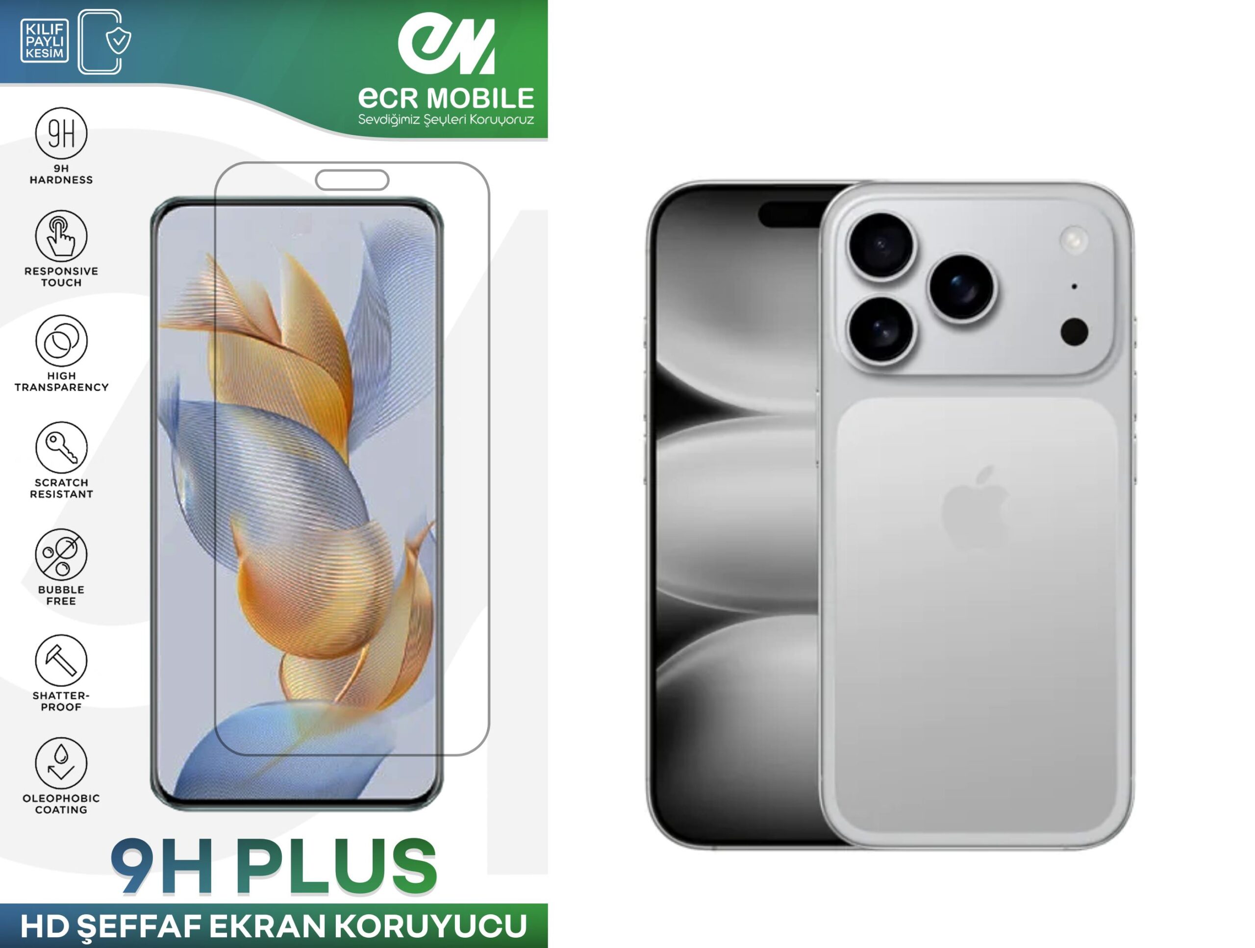 Ürün tempered cam değildir. 9H esnek nano üründür. Kırılmaz ve çatlamaz.Iphone 17 Pro modeli için özel üretilmiştir. Tam uyumludur. Ön Kamera Bölümü açıktır.Şeffaf Üründür.ECR 9H Nano, bir koruyucu filmdir. Bu film, ekranınızı kırılmaz hale getirir ve aynı zamanda ekranınızın ömrünü uzatır.ECR 9H Nano, ekranınızın üstüne yapıştırılır ve ekranınızın üzerinde ince bir tabaka oluşturur. Bu tabaka, ekranınızın üstüne çarpan nesnelerin hasarını azaltır ve ekranınızı darbelere dayanıklı hale getirir.9H Nano, ekranınızın üstüne uygulandıktan sonra hafif ve ince bir tabaka oluşturur ve ekranınızın doğal görünümünü bozmaz. Ayrıca, dokunmatik özelliğini etkilemez ve ekranınızın dokunmatik özelliğini bozmaz.ECR 9H Nano, kurulumu kolaydır ve ekranınızı koruma işlemini tamamlamak için sadece birkaç adım gerekir. Öncelikle, ekranınızı temizleyin ve kurutun. Daha sonra, 9H Nano filmini ekranınızın üstüne yerleştirin ve içinde bulunan sünger veya kauçuk araçları kullanarak hava kabarcıklarını çıkarın. İşlem tamamlandıktan sonra, ekranınız koruyucu film ile kaplı olacak ve darbelere dayanıklı hale gelecektir.9H Nano, ekranınızın korunmasını sağlarken aynı zamanda ekranınızın görüntü kalitesini de korur. Bu film, ekranınızın üstünde bulunan parlaklığı ve renkleri azaltmaz ve ekranınızın görüntü kalitesini bozmaz.9H Nano, ekranınızın ömrünü uzatır ve ekranınızı kırılmaz hale getirir. Bu film, ekranınızın üstüne yapıştırıldıktan sonra uzun süre dayanıklıdır ve zamanla bozulmaz. Bu nedenle, 9H Nano filmi ile ekranınızı korumanın yanı sıra, aynı zamanda maliyetlerinizi de azaltabilirsiniz.
