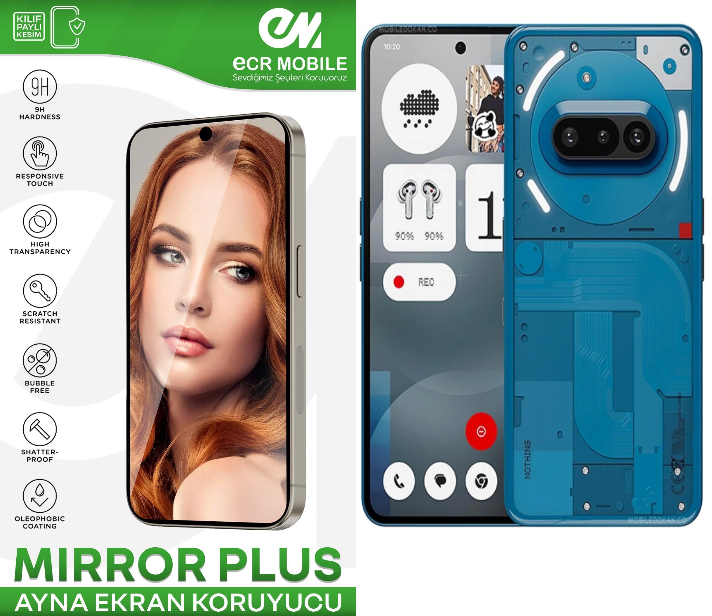 ÜRÜN TEMPERED CAM DEĞİLDİR.ESNEK NANODUR SİZ DE GÜZELLİĞİNİZİ BİR DE TELEFONUNUZUN GÖZÜNDEN GÖRMEK İSTEMEZ MİSİNİZ? TÜRKİYE’DE İLK VE TEK AYNA EKRAN KORUYUCULAR ECR MOBILE FARKIYLA!!!Nothin Phone 3AMODELİ İLE TAM UYUMLUDUR. ECRMOBILE 9H KIRILMAZ AYNA(MİRROR)EKRAN KORUYUCU ÖZELLİKLERİ-ECR MOBILE KIRILMAZ TPU (TERMOPLASTİK POLİÜRETAN ÜRÜN)MALZEMEDEN OLUP DÜNYANIN EN İNCE VE SAĞLAM MALZEMESİDİR.-ÜRÜNÜMÜZ NANO OLUP KESİNLİKLE CAM (TEMPERED) VEYA PİLEKSİ DEĞİLDİR.-ÜRÜN GÖRSELLERİ FARKLI MODELLER İÇİN ÇEKİLMİŞ OLABİLİR.-SATIN ALDIĞINIZ ÜRÜN SEÇİM YAPTIĞINIZ MODELE UYUMLU OLARAK GÖNDERİLECEKTİR.-ÜRÜNLER LAZER MAKİNELERDE SIFIR HATA İLE KESİLMEKTEDİR.-KALİTELİ DAYANIKLI ULTRA ESNEK YAPIDADIR.-KOLAY YAPIŞAN GÖRÜNTÜ KALİTESİNİ BOZMAYAN DOKUNMATİK HASSASİYETİNİ ENGELLEMEYEN YAPIYA SAHİPTİR-ULTRA İNCE ESNEK ÖZELLİKTEDİR.-ÜRÜNLER CİHAZINIZIN MODEL VE EKRAN YAPISINA GÖRE KASA DOSTU MODEL OLARAK MAKİNEDE OTAMATİK KESİLMEKTEDİR.DOLAYISI İLE KENARLARDA AZ DA OLSA BOŞLUK OLABİLMEKTEDİR. -KASA DOSTU KESİMLERDE KENARLARDA KILIF İLE KULLANIMDA BİR SORUN YAŞANMAMASI AÇISINDAN BOŞLUK BULUNMAKTADIR -UYGULAMA YAPMADAN ÖNCE ÜRÜNÜN MODEL UYUMLULUĞUNU KONTROL EDİNİZ-UYGULAMADAN ÖNCE EKRAN TOZ KİR VE YAĞDAN ARINDIRILMIŞ OLMALIDIR.-BUNUN İÇİN KUTU İÇERİĞİNDE BULUNAN GSM CİHAZLAR İÇİN ÖZEL OLARAK ÜRETİLMİŞ KOZMİK AKSAMA ZARAR VERMEYEN İÇERİSİNDE İPA (İZO PROPİL ALKOL ) İÇEREN TEMİZLEME MENDİLİNİ VE KURULAMA BEZİNİ KULLANINIZ -ÜRÜN TEK KULLANIMLIK OLDUĞUNDAN KORUYUCU YÜZEYLERİ SÖKÜLMÜŞ,KULLANILMIŞ ETİKETLERİ SÖKÜLMÜŞ ÜRÜN İADESİ KESİNLİKLE YOKTUR.-AÇILMAMIŞ ÜRÜNLERİ İADE EDEBİLİR VEYA BAŞKA MODEL İLE DEĞİŞİM YAPILMASINI TALEP EDEBİLİRSİNİZ. -ÜRÜNLERİMİZ ECR MOBILE EKRAN KORUMA SİSTEMLERİ TARAFINDAN TÜRKİYE’DE ÜRETİLMİŞTİR