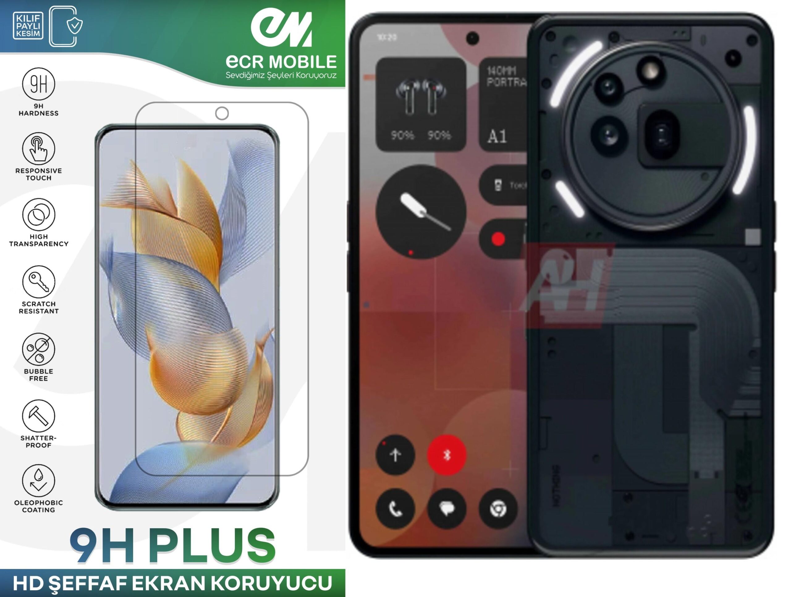 Ürün tempered cam değildir. 9H esnek nano üründür. Kırılmaz ve çatlamaz.Nothing Phone 3A Pro modeli için özel üretilmiştir. Tam uyumludur. Ön Kamera Bölümü açıktır.Şeffaf Üründür.ECR 9H Nano, bir koruyucu filmdir. Bu film, ekranınızı kırılmaz hale getirir ve aynı zamanda ekranınızın ömrünü uzatır.ECR 9H Nano, ekranınızın üstüne yapıştırılır ve ekranınızın üzerinde ince bir tabaka oluşturur. Bu tabaka, ekranınızın üstüne çarpan nesnelerin hasarını azaltır ve ekranınızı darbelere dayanıklı hale getirir.9H Nano, ekranınızın üstüne uygulandıktan sonra hafif ve ince bir tabaka oluşturur ve ekranınızın doğal görünümünü bozmaz. Ayrıca, dokunmatik özelliğini etkilemez ve ekranınızın dokunmatik özelliğini bozmaz.ECR 9H Nano, kurulumu kolaydır ve ekranınızı koruma işlemini tamamlamak için sadece birkaç adım gerekir. Öncelikle, ekranınızı temizleyin ve kurutun. Daha sonra, 9H Nano filmini ekranınızın üstüne yerleştirin ve içinde bulunan sünger veya kauçuk araçları kullanarak hava kabarcıklarını çıkarın. İşlem tamamlandıktan sonra, ekranınız koruyucu film ile kaplı olacak ve darbelere dayanıklı hale gelecektir.9H Nano, ekranınızın korunmasını sağlarken aynı zamanda ekranınızın görüntü kalitesini de korur. Bu film, ekranınızın üstünde bulunan parlaklığı ve renkleri azaltmaz ve ekranınızın görüntü kalitesini bozmaz.9H Nano, ekranınızın ömrünü uzatır ve ekranınızı kırılmaz hale getirir. Bu film, ekranınızın üstüne yapıştırıldıktan sonra uzun süre dayanıklıdır ve zamanla bozulmaz. Bu nedenle, 9H Nano filmi ile ekranınızı korumanın yanı sıra, aynı zamanda maliyetlerinizi de azaltabilirsiniz.