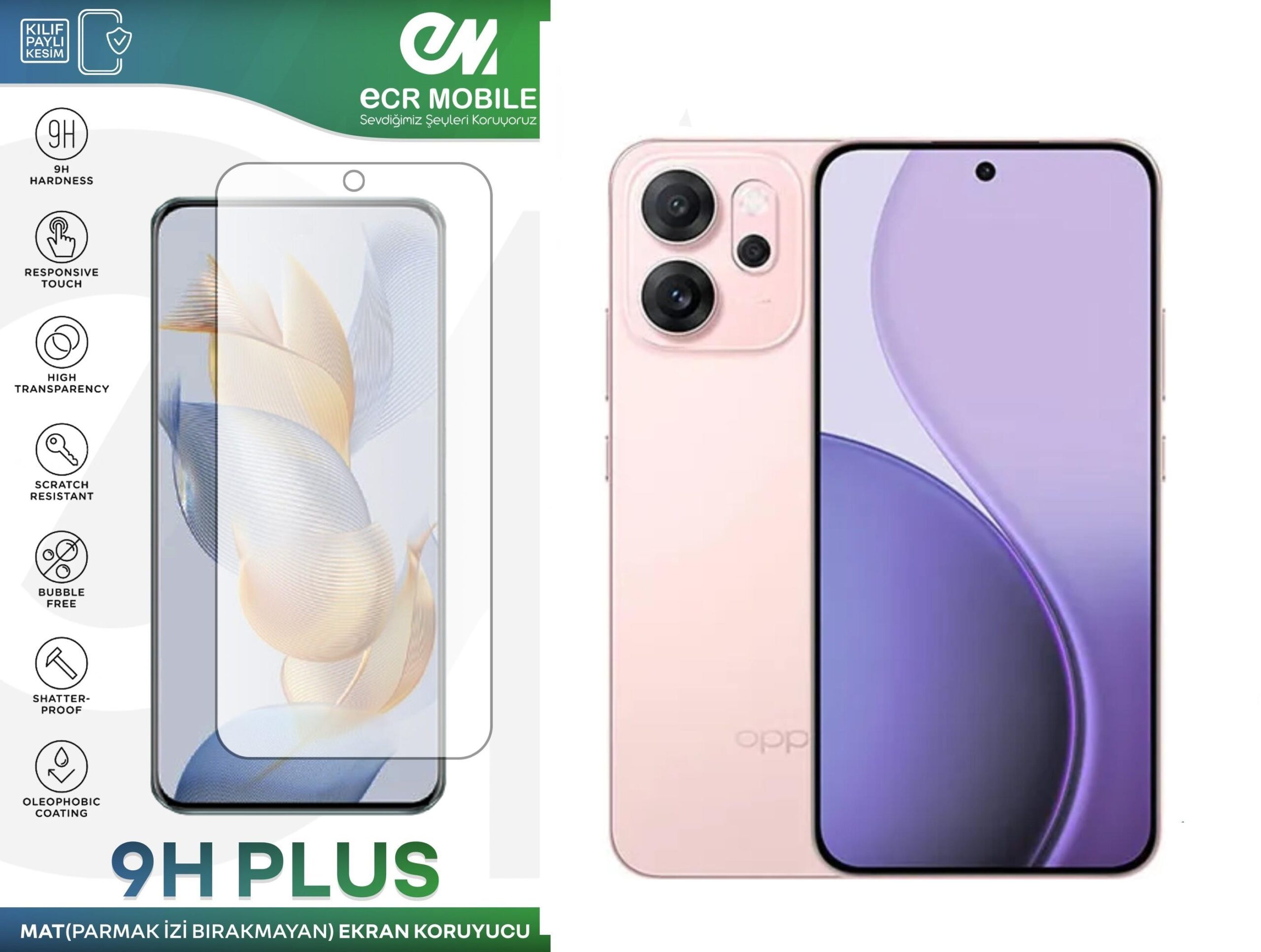 Ürün tempered cam değildir.9H esnek nanodur. Kırılmaz ve çatlamaz.Oppo Reno 14F modeli ile tam uyumludur.Ön kamera yeri açıktır.Mat(buzlu) üründür. Parmak izi bırakmaz.ECR 9H mat ekran koruyucu, cihazınızın ekranını çiziklere, darbelere ve parmak izlerine karşı korumak için üretilmiş özel bir ekran koruyucudur. ECR 9H sertliğinde cam malzemeden yapılmış olan bu koruyucu, cihazınızın ekranını yüksek düzeyde korur. 9H sertliği, ekran koruyucunun en yüksek sertlik derecesidir ve bu nedenle çizilmelere karşı son derece dayanıklıdır. Ayrıca, mat yüzeyi sayesinde, güneş ışığında bile cihazınızın ekranını rahatlıkla okuyabilirsiniz. Mat yüzey ayrıca, cihazınızın ekranında parmak izi ve yağ kalıntısı oluşmasını da engeller. ECR Ekran koruyucunun özel tasarımı, dokunmatik özellikleri etkilemeden cihazınızın ekranına tam olarak oturur. Bu sayede, cihazınızın kullanımını kesintisiz bir şekilde sürdürebilirsiniz. ECR 9H mat ekran koruyucu, cihazınızın ekranını güvenli bir şekilde koruyarak, cihazınızın ömrünü uzatmanıza ve daha uzun süre kullanabilmenize yardımcı olur.