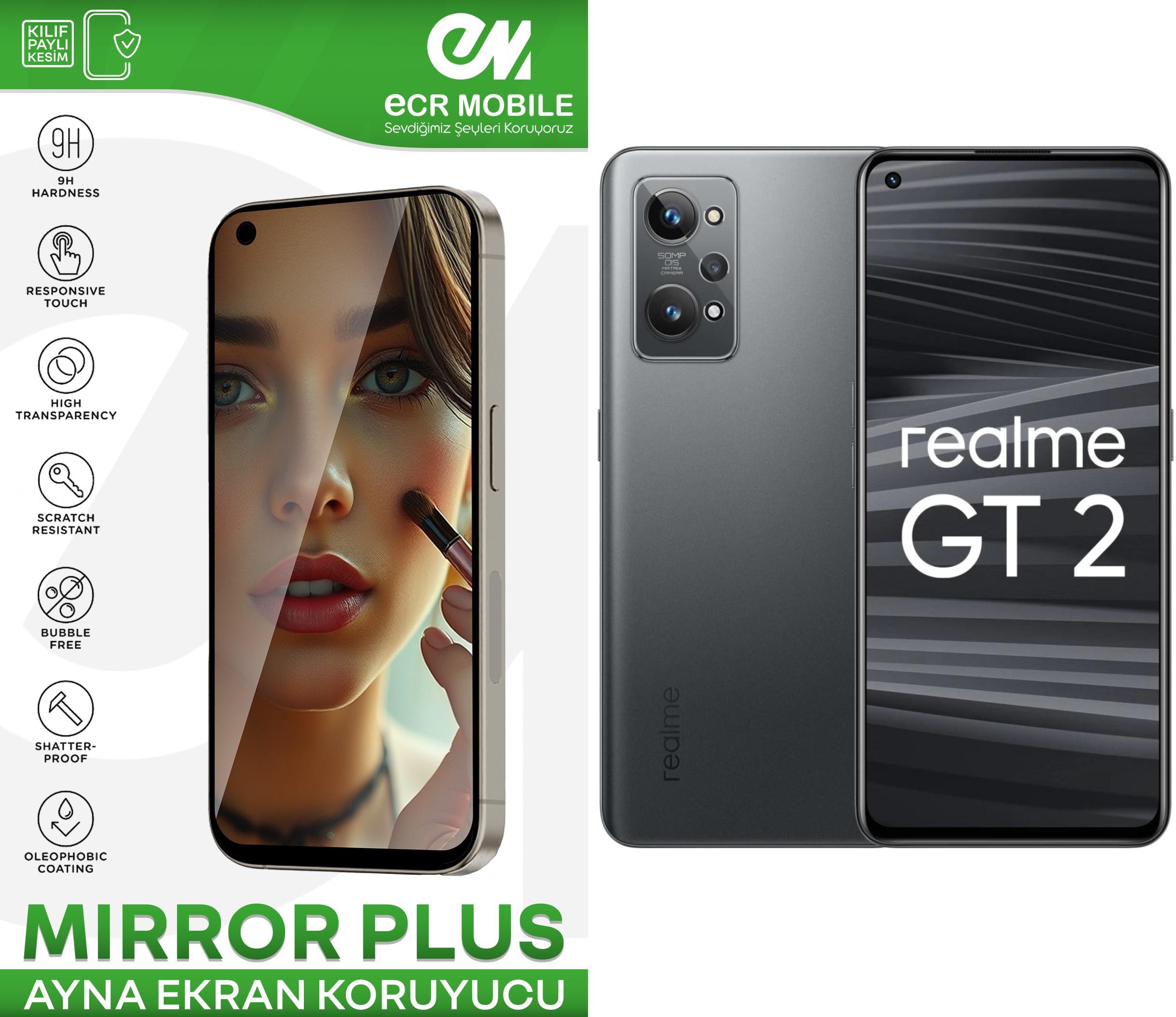ÜRÜN TEMPERED CAM DEĞİLDİR.ESNEK NANODUR SİZ DE GÜZELLİĞİNİZİ BİR DE TELEFONUNUZUN GÖZÜNDEN GÖRMEK İSTEMEZ MİSİNİZ? TÜRKİYE’DE İLK VE TEK AYNA EKRAN KORUYUCULAR ECR MOBILE FARKIYLA!!! Realme GT2 MODELİ İLE TAM UYUMLUDUR. ECRMOBILE 9H KIRILMAZ AYNA(MİRROR)EKRAN KORUYUCU ÖZELLİKLERİ-ECR MOBILE KIRILMAZ TPU (TERMOPLASTİK POLİÜRETAN ÜRÜN)MALZEMEDEN OLUP DÜNYANIN EN İNCE VE SAĞLAM MALZEMESİDİR.-ÜRÜNÜMÜZ NANO OLUP KESİNLİKLE CAM (TEMPERED) VEYA PİLEKSİ DEĞİLDİR.-ÜRÜN GÖRSELLERİ FARKLI MODELLER İÇİN ÇEKİLMİŞ OLABİLİR.-SATIN ALDIĞINIZ ÜRÜN SEÇİM YAPTIĞINIZ MODELE UYUMLU OLARAK GÖNDERİLECEKTİR.-ÜRÜNLER LAZER MAKİNELERDE SIFIR HATA İLE KESİLMEKTEDİR.-KALİTELİ DAYANIKLI ULTRA ESNEK YAPIDADIR.-KOLAY YAPIŞAN GÖRÜNTÜ KALİTESİNİ BOZMAYAN DOKUNMATİK HASSASİYETİNİ ENGELLEMEYEN YAPIYA SAHİPTİR-ULTRA İNCE ESNEK ÖZELLİKTEDİR.-ÜRÜNLER CİHAZINIZIN MODEL VE EKRAN YAPISINA GÖRE KASA DOSTU MODEL OLARAK MAKİNEDE OTAMATİK KESİLMEKTEDİR.DOLAYISI İLE KENARLARDA AZ DA OLSA BOŞLUK OLABİLMEKTEDİR. -KASA DOSTU KESİMLERDE KENARLARDA KILIF İLE KULLANIMDA BİR SORUN YAŞANMAMASI AÇISINDAN BOŞLUK BULUNMAKTADIR  -UYGULAMA YAPMADAN ÖNCE ÜRÜNÜN MODEL UYUMLULUĞUNU KONTROL EDİNİZ-UYGULAMADAN ÖNCE EKRAN TOZ KİR VE YAĞDAN ARINDIRILMIŞ OLMALIDIR.-BUNUN İÇİN KUTU İÇERİĞİNDE BULUNAN GSM CİHAZLAR İÇİN ÖZEL OLARAK ÜRETİLMİŞ KOZMİK AKSAMA ZARAR VERMEYEN İÇERİSİNDE İPA (İZO PROPİL ALKOL ) İÇEREN TEMİZLEME MENDİLİNİ VE KURULAMA BEZİNİ KULLANINIZ -AÇILMAMIŞ ÜRÜNLERİ İADE EDEBİLİR VEYA BAŞKA MODEL İLE DEĞİŞİM YAPILMASINI TALEP EDEBİLİRSİNİZ.  -ÜRÜNLERİMİZ ECR MOBILE EKRAN KORUMA SİSTEMLERİ TARAFINDAN TÜRKİYE’DE ÜRETİLMİŞTİR