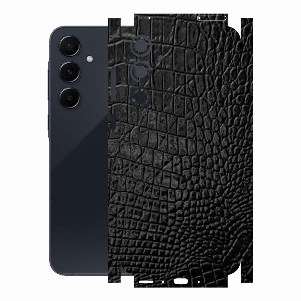 Samsung A55 ile Uyumlu Deri Desenli Siyah Arka Kaplama