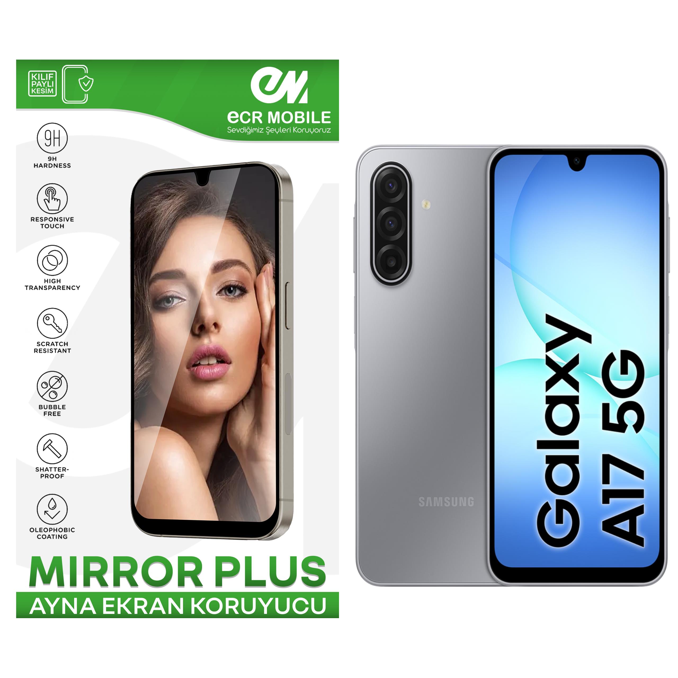ÜRÜN TEMPERED CAM DEĞİLDİR.ESNEK NANODUR SİZ DE GÜZELLİĞİNİZİ BİR DE TELEFONUNUZUN GÖZÜNDEN GÖRMEK İSTEMEZ MİSİNİZ? TÜRKİYE’DE İLK VE TEK AYNA EKRAN KORUYUCULAR ECR MOBILE FARKIYLA!!!Samsung Galaxy A17MODELİ İLE TAM UYUMLUDUR. Ayna Ekran Koruyucularda yapısı gereği Parmak izi okuyucu sağlıklı çalışmayabilir. Bu bilgiler ışığında sipariş geçmeniz önerilir.ECRMOBILE 9H KIRILMAZ AYNA(MİRROR)EKRAN KORUYUCU ÖZELLİKLERİ-ECR MOBILE KIRILMAZ TPU (TERMOPLASTİK POLİÜRETAN ÜRÜN)MALZEMEDEN OLUP DÜNYANIN EN İNCE VE SAĞLAM MALZEMESİDİR.-ÜRÜNÜMÜZ NANO OLUP KESİNLİKLE CAM (TEMPERED) VEYA PİLEKSİ DEĞİLDİR.-ÜRÜN GÖRSELLERİ FARKLI MODELLER İÇİN ÇEKİLMİŞ OLABİLİR.-SATIN ALDIĞINIZ ÜRÜN SEÇİM YAPTIĞINIZ MODELE UYUMLU OLARAK GÖNDERİLECEKTİR.-ÜRÜNLER LAZER MAKİNELERDE SIFIR HATA İLE KESİLMEKTEDİR.-KALİTELİ DAYANIKLI ULTRA ESNEK YAPIDADIR.-KOLAY YAPIŞAN GÖRÜNTÜ KALİTESİNİ BOZMAYAN DOKUNMATİK HASSASİYETİNİ ENGELLEMEYEN YAPIYA SAHİPTİR-ULTRA İNCE ESNEK ÖZELLİKTEDİR.-ÜRÜNLER CİHAZINIZIN MODEL VE EKRAN YAPISINA GÖRE KASA DOSTU MODEL OLARAK MAKİNEDE OTAMATİK KESİLMEKTEDİR.DOLAYISI İLE KENARLARDA AZ DA OLSA BOŞLUK OLABİLMEKTEDİR. -KASA DOSTU KESİMLERDE KENARLARDA KILIF İLE KULLANIMDA BİR SORUN YAŞANMAMASI AÇISINDAN BOŞLUK BULUNMAKTADIR -UYGULAMA YAPMADAN ÖNCE ÜRÜNÜN MODEL UYUMLULUĞUNU KONTROL EDİNİZ-UYGULAMADAN ÖNCE EKRAN TOZ KİR VE YAĞDAN ARINDIRILMIŞ OLMALIDIR.-BUNUN İÇİN KUTU İÇERİĞİNDE BULUNAN GSM CİHAZLAR İÇİN ÖZEL OLARAK ÜRETİLMİŞ KOZMİK AKSAMA ZARAR VERMEYEN İÇERİSİNDE İPA (İZO PROPİL ALKOL ) İÇEREN TEMİZLEME MENDİLİNİ VE KURULAMA BEZİNİ KULLANINIZ -ÜRÜN TEK KULLANIMLIK OLDUĞUNDAN KORUYUCU YÜZEYLERİ SÖKÜLMÜŞ,KULLANILMIŞ ETİKETLERİ SÖKÜLMÜŞ ÜRÜN İADESİ KESİNLİKLE YOKTUR.-AÇILMAMIŞ ÜRÜNLERİ İADE EDEBİLİR VEYA BAŞKA MODEL İLE DEĞİŞİM YAPILMASINI TALEP EDEBİLİRSİNİZ. -ÜRÜNLERİMİZ ECR MOBILE EKRAN KORUMA SİSTEMLERİ TARAFINDAN TÜRKİYE’DE ÜRETİLMİŞTİR