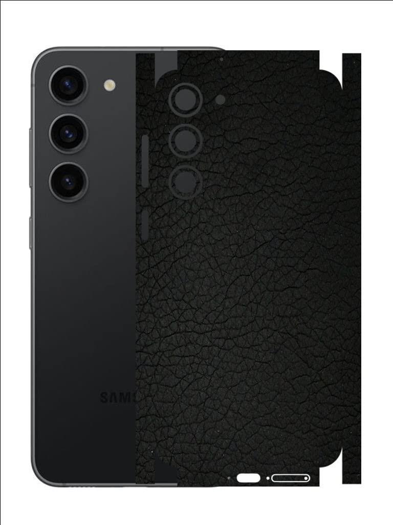 Samsung Galaxy S23 ile Uyumlu Deri Desenli Siyah Arka Kaplama