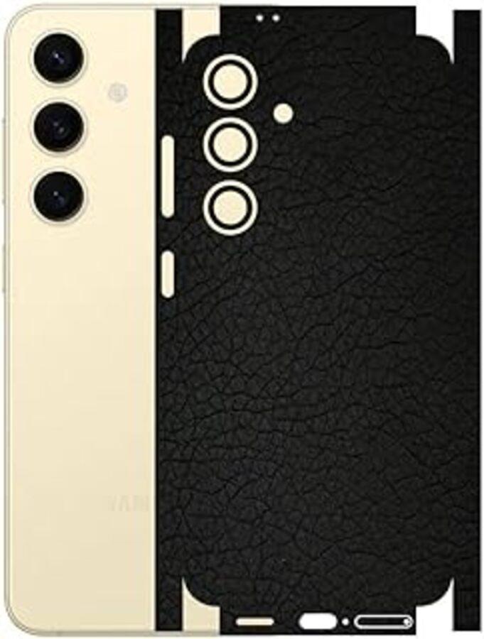 Samsung Galaxy S24+ ile Uyumlu Deri Desenli Siyah Arka Kaplama