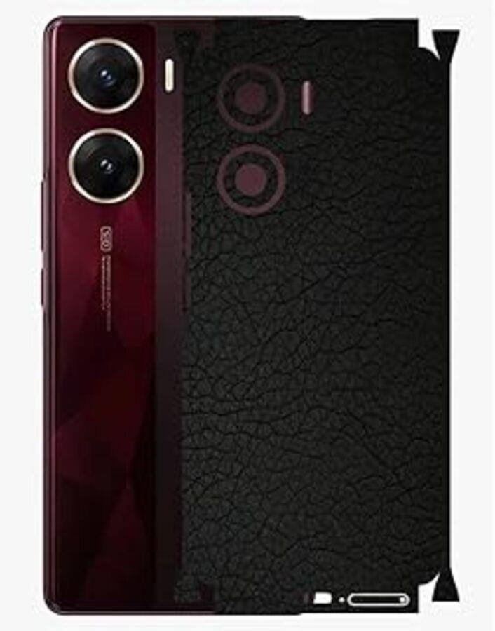 Vivo V29 Lite ile Uyumlu Deri Desenli Siyah Arka Kaplama
