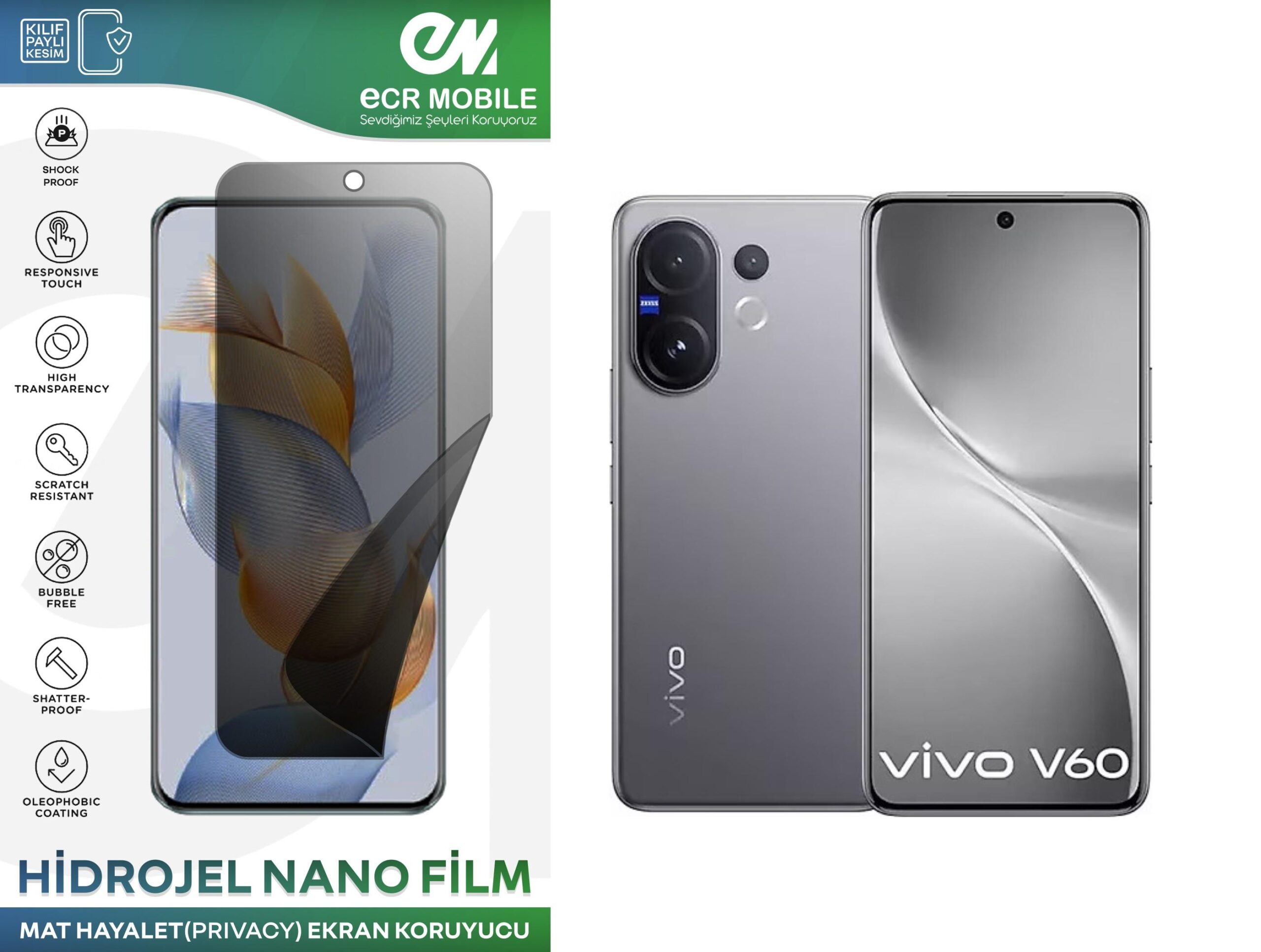 Vivo V60 ile Uyumlu Mat Hayalet (Privacy) Hidrojel Film Ekran Koruyucu